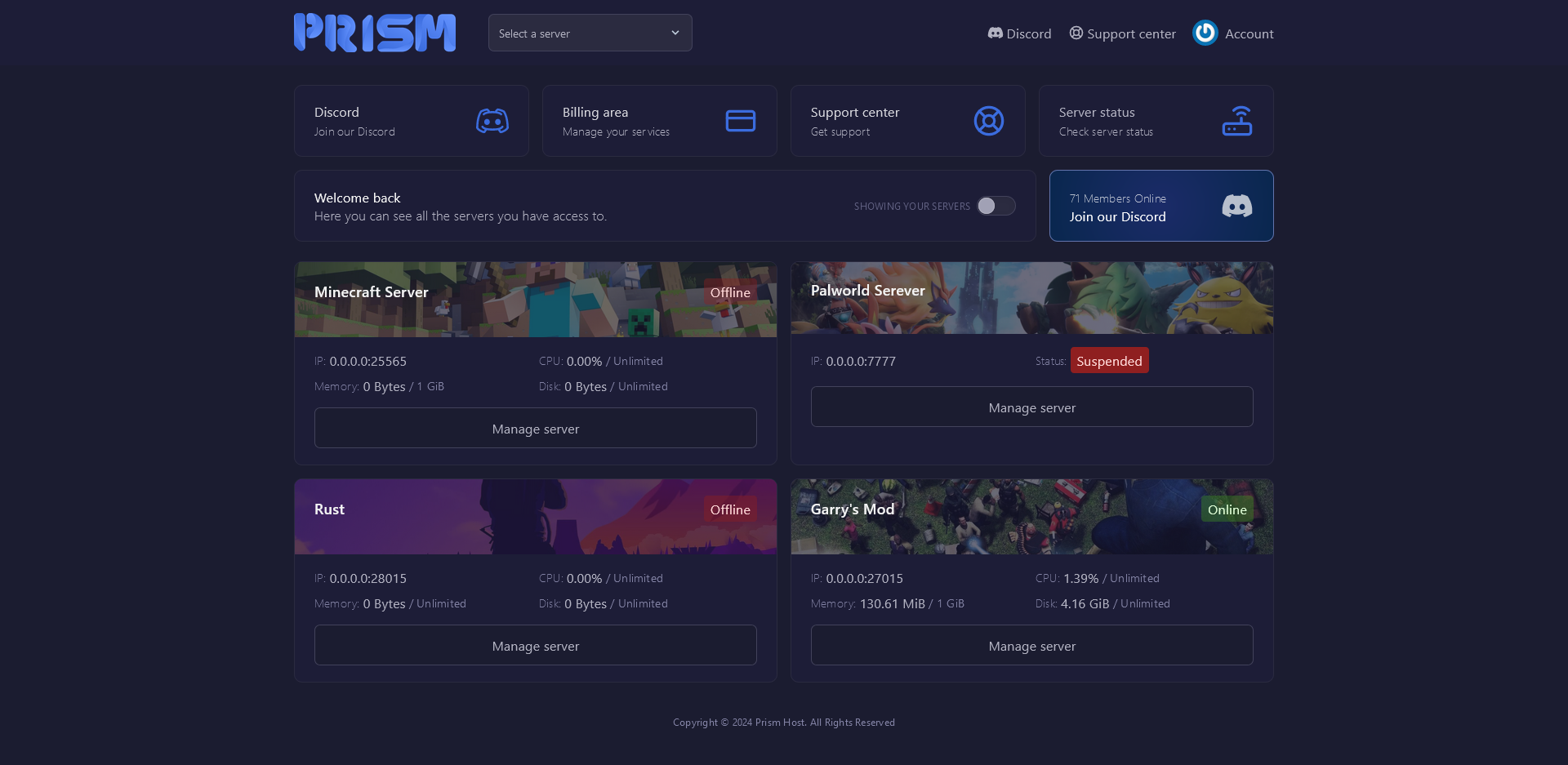 We had switched to Prism Host in late 2022 and have loved it ever since! Their fast support & amazing prices are one of the many benefits for switching to Prism Host. Our team hasn't had any issues what so ever after purchasing a dedicated server, we even get faster then advertised speeds! 5/5 Stars, Recommend to everyone!